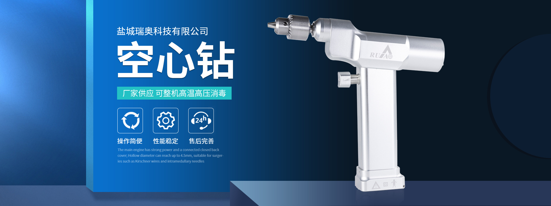 鹽城瑞奧科技有限公司主要產(chǎn)品:醫(yī)用電動(dòng)鋸鉆系列(可高溫高壓消毒和熏蒸消毒兩種):包含骨鉆、擺鋸、胸骨鋸、空心骨鉆、開(kāi)顱鉆、顱骨銑等等,適用于骨科、腦外科、神經(jīng)外科、胸外科、手足及顯微外科、脊柱外科、整形外科等各種手術(shù)的要求。電動(dòng)石膏鋸可切割高分子繃帶、石膏等。基礎(chǔ)器械系列:咬骨鉗,髓核鉗,椎板咬骨鉗,持骨鉗,四肢骨折手術(shù)器械包等。